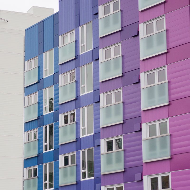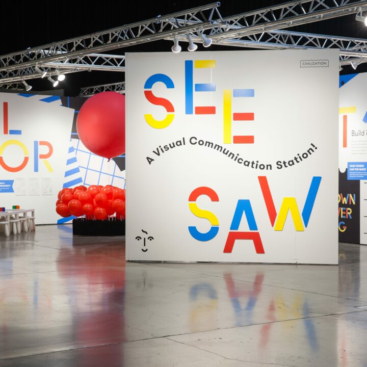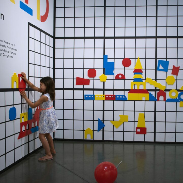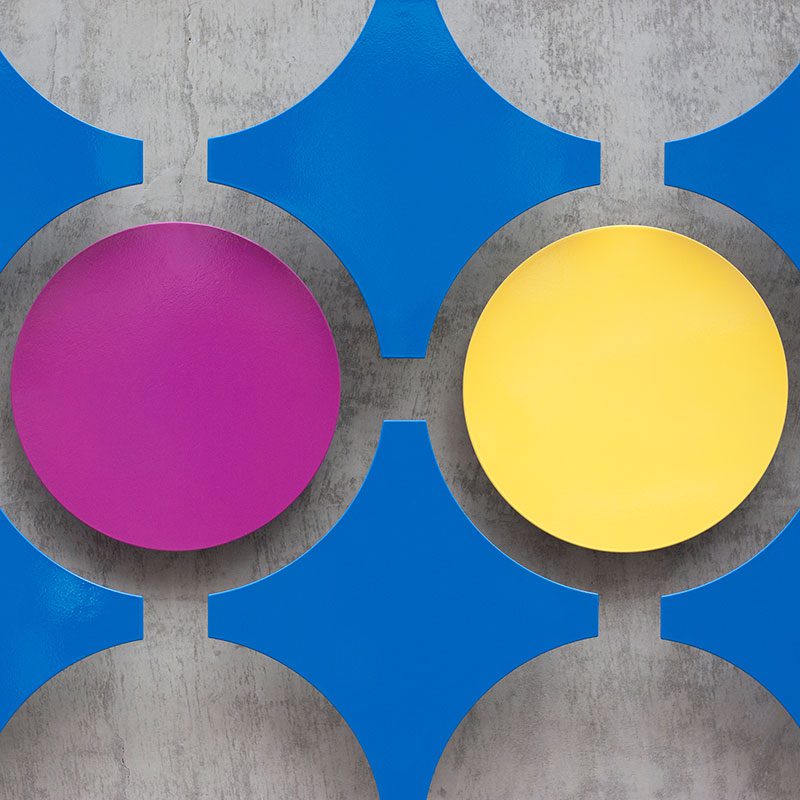 Throughout all four panels we utilized circular elements, simple geometry, modularity, a vibrant color palette, layering, and utilized the building itself as a canvas.