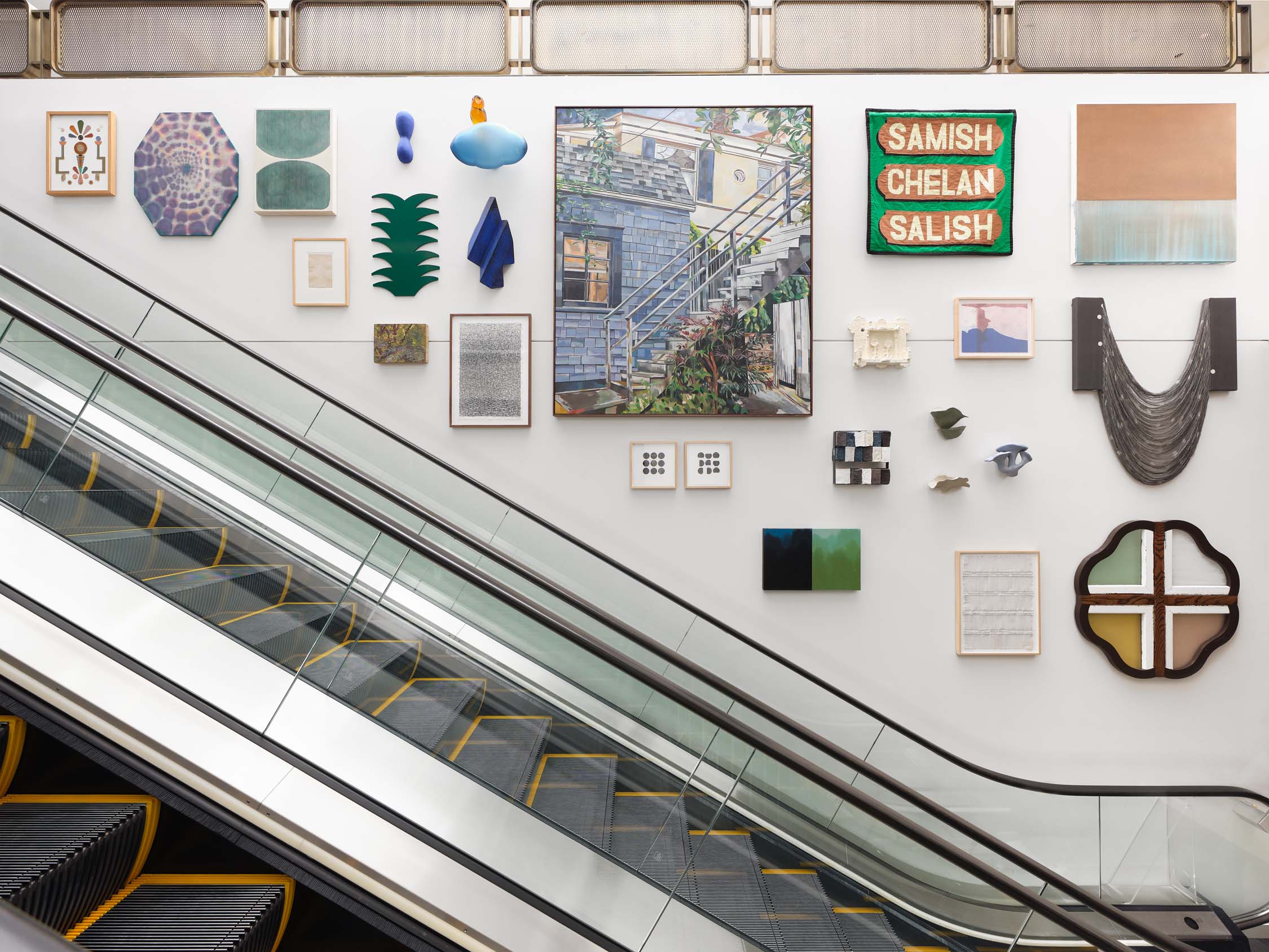 We’ve been collaborating with EQ Office and USBC since 2021, finding close alignment with EQ’s dedication to supporting and celebrating local creative communities. From murals to temporary wayfinding, event programming, and now a curation of a new collection of Northwest artworks, we’re thrilled to have worked alongside EQ Office to bring Cedar Hall to life. Building off the space’s natural materials, meticulous details, and dedicated craftspeople, we curated a collection—All Along—that will honor Cedar Hall and the community it serves. Installed June 2023.